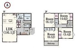 間取り内訳:洋室 5.9帖(1階)・洋室 5.4帖(1階)・洋室 4.6帖(1階)・リビングダイニングキッチン 17.9帖(2階)・洋室 6.1帖(2階)