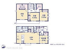 | 間取り | 4LDK 間取り内訳:リビングダイニングキッチン 16帖(1階)・和室 4.5畳(1階)・洋室 7帖(2階)・洋室 5.2帖(2階)x2 |