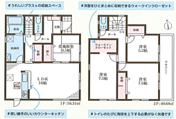 | 間取り | 3LDK 間取り内訳:リビングダイニングキッチン 18帖(2階)・洋室 4.5帖(1階)x2・洋室 6帖(1階) |