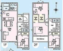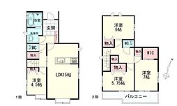 | 間取り | 4LDK 間取り内訳:リビングダイニングキッチン 19帖(1階)・洋室 7帖(2階)・洋室 6帖(2階)・洋室 4.5帖(2階)・洋室 4.5帖(2階) |