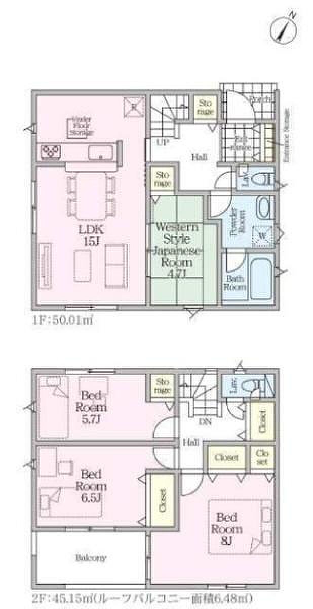| 間取り | 4LDK 間取り内訳:リビングダイニングキッチン 15帖(1階)・和室 4.7畳(1階)・洋室 8帖(2階)・洋室 6.5帖(2階)・洋室 5.7帖(2階) |