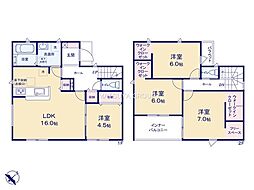 | 間取り | 4LDK 間取り内訳:リビングダイニングキッチン 16帖(1階)・洋室 4.5帖(1階)・洋室 7帖(2階)・洋室 6帖(2階)・洋室 6帖(2階) |