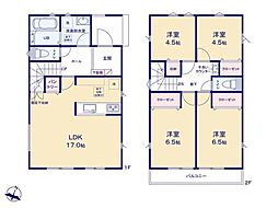 | 間取り | 4LDK 間取り内訳:リビングダイニングキッチン 15.8帖(1階)・洋室 6.8帖(2階)・洋室 5.3帖(2階)・洋室 5.3帖(2階)・洋室 4.5帖(2階) |