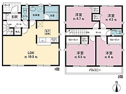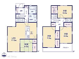 | 間取り | 4LDK 間取り内訳:リビングダイニングキッチン 17.5帖(1階)・和室 4.5畳(1階)・洋室 5.2帖(2階)・洋室 6帖(2階)・洋室 7.5帖(2階) |