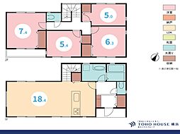 | 間取り | 4LDK 間取り内訳:リビングダイニングキッチン 19.2帖(1階)・洋室 5帖(1階)・洋室 6.8帖(2階)・洋室 6帖(2階)・洋室 5帖(2階) |