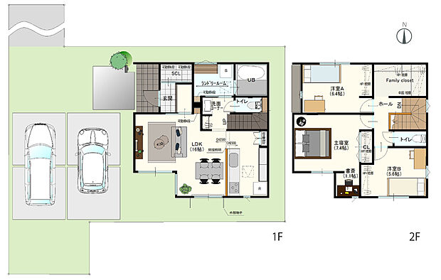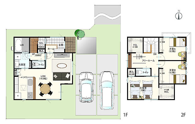 - 「建築条件付き土地」の「建物プラン例」は、土地購入者の設計プランの一例であり、プランの採用可否は任意です。