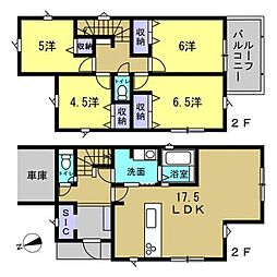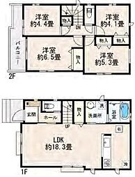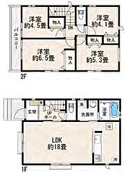 | 間取り | 4LDK 間取り内訳:リビングダイニングキッチン 18帖(1階)・洋室 6.5帖(2階)・洋室 4.5帖(2階)・洋室 4.1帖(2階)・洋室 5.3帖(2階) |