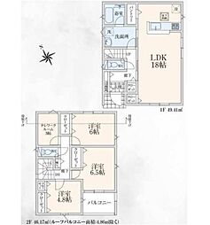 | 間取り | 4SLDK 間取り内訳:リビングダイニングキッチン 18.5帖(1階)・洋室 4.9帖(1階)・洋室 8.5帖(2階)・洋室 6帖(2階)・洋室 5.2帖(2階)・収納(2階) |