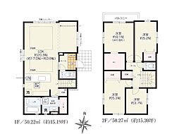 間取り内訳:リビングダイニングキッチン 20帖(1階)・洋室 5.2帖(2階)・洋室 7.2帖(2階)・洋室 5.2帖(2階)・洋室 5.2帖(2階)