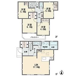 間取り内訳:リビングダイニングキッチン 17.9帖(1階)・洋室 4.8帖(2階)・洋室 5帖(2階)・洋室 5.4帖(2階)・洋室 6.1帖(2階)