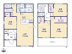 | 間取り | 5LDK 間取り内訳:リビングダイニングキッチン 17.7帖(1階)・洋室 3.7帖(1階)・洋室 6.7帖(2階)・洋室 5帖(2階)・洋室 5帖(2階)・洋室 4.5帖(2階) |