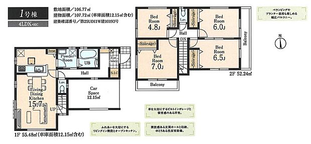 | 間取り | 4LDK 間取り内訳:リビングダイニングキッチン 15.7帖(1階)・洋室 4.8帖(2階)・洋室 6帖(2階)・洋室 6.5帖(2階)・洋室 7帖(2階) |