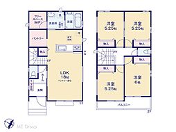 | 間取り | 4LDK 間取り内訳:リビングダイニングキッチン 17帖(1階)・洋室 5.4帖(1階)・洋室 9帖(2階)・洋室 8帖(2階)・洋室 6.5帖(2階) |