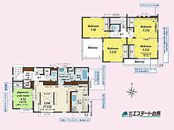 | 間取り | 4LDK(将来5LDKに対応可。) 間取り内訳:リビングダイニングキッチン 17.1帖(1階)・和室 4.5畳(1階)・洋室 5帖(2階)・洋室 5.2帖(2階)・洋室 10.5帖(2階) |