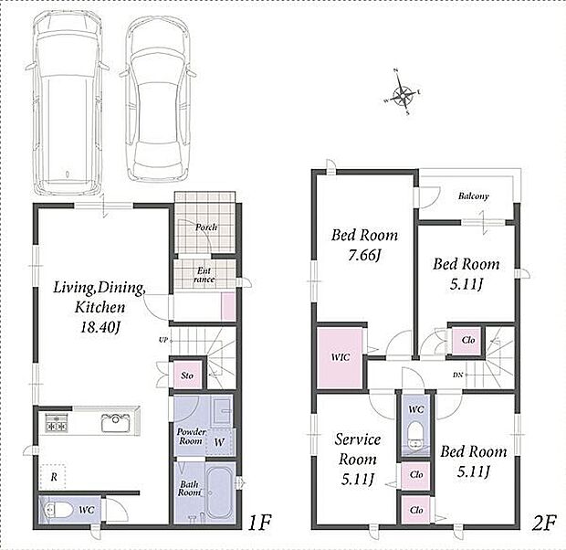 並列2台駐車可能なカースペース付き。ZEH水準仕様の省エネ新築住宅です。
