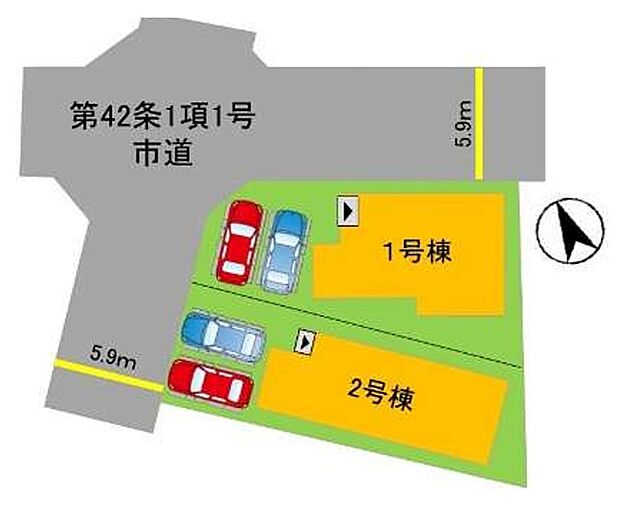 2号棟:西5.9m /1号棟:西5.9m 北5.9m