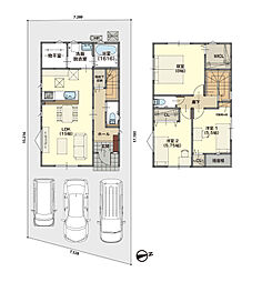 | 間取り | 4LDK 間取り内訳:リビングダイニングキッチン 17帖(1階)・和室 3畳(1階)・洋室 7帖(2階)・洋室 6帖(2階)x2 |