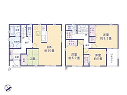 | 間取り | 3SLDK 間取り内訳:リビングダイニングキッチン 18帖(1階)・洋室 6.5帖(2階)・洋室 6.5帖(2階)・洋室 5.3帖(2階)・収納 5.3帖(2階) |