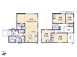 | 間取り | 4LDK(WIC、ホールクローク、フリースペース) 間取り内訳:リビングダイニングキッチン 17帖・洋室 10.5帖・洋室 5.2帖・洋室 5.2帖・洋室 5帖 |