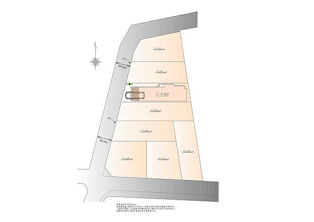 • 「建築条件付き土地」の「建物プラン例」は、土地購入者の設計プランの一例であり、プランの採用可否は任意です。