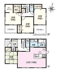 | 間取り | 4LDK LDK16帖 駐車2台 WIC インナーバルコニー 全居室収納スペース 廊下収納 | 建物階 | 木造2階建て |