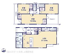 | 間取り | 3LDK 間取り内訳:リビングダイニングキッチン 21.2帖(1階)・洋室 10.5帖(2階)・洋室 5.2帖(2階)・洋室 6帖(2階) |