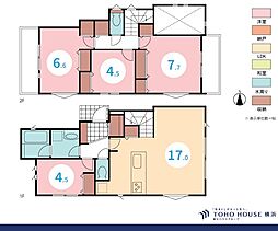 間取り内訳:リビングダイニングキッチン 17.7帖(1階)・洋室 10.4帖(2階)・洋室 7帖(2階)・洋室 5.2帖(2階)
