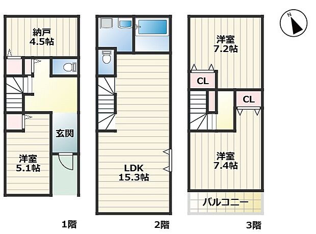 間取り 3LDK~4LDK 建物階 木造3階建
