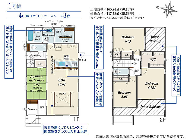 | 建物面積 | 115.09m2(約34.81坪)~117.58m2(約35.56坪) | ||