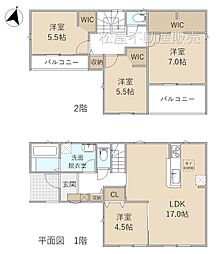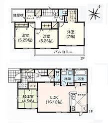 | 間取り | 4LDK 間取り内訳:リビングダイニングキッチン 16.5帖(1階)・洋室 7帖(1階)・洋室 5.4帖(1階)・洋室 5.4帖(1階)・洋室 4.6帖(1階) |