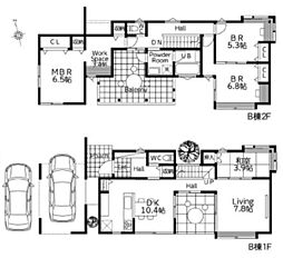 | 間取り | 4LDK(ワークスペース) 間取り内訳:リビングダイニングキッチン 17.3帖・和室 5.8畳・洋室 5.8帖・洋室 6.4帖・洋室 6.6帖 |