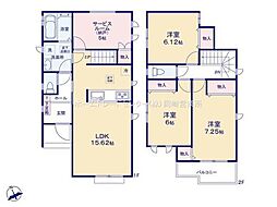 | 間取り | 3LDK(マルチスキップ+WIC) 間取り内訳:リビングダイニングキッチン 19帖(1階)・洋室 5.2帖(2階)・洋室 5.2帖(2階)・洋室 8帖(2階) |