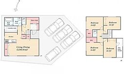 | 間取り | 4LDK 間取り内訳:リビングダイニングキッチン 18.5帖(1階)・洋室 7.5帖(2階)・洋室 6.5帖(2階)・洋室 4.8帖(2階)・洋室 4.5帖(2階) |