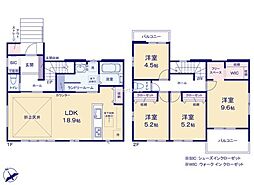 | 間取り | 3SLDK 間取り内訳:リビングダイニングキッチン 21.5帖(1階)・洋室 10.5帖(2階)・洋室 5.2帖(2階)x2・収納(2階) |