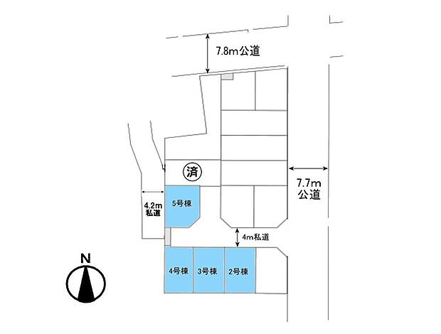 • 5号棟【前面道路4m】車の通行が少ないので、静かな住環境を維持することができます。