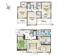 間取り内訳:リビングダイニングキッチン 17帖(1階)・和室 5.2畳(1階)・洋室 7.8帖(2階)・洋室 6.7帖(2階)・洋室 5.2帖(2階)