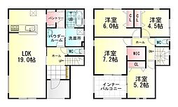間取り内訳:リビングダイニングキッチン 22.5帖(1階)・その他 3帖(1階)・洋室 7.5帖(2階)・洋室 6帖(2階)・洋室 6帖(2階)