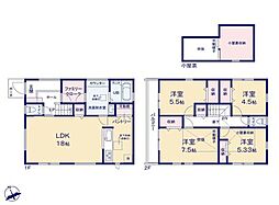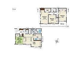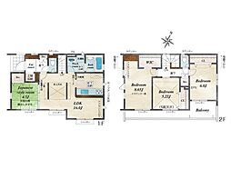 | 間取り | 3SLDK 間取り内訳:リビングダイニングキッチン(1階)・洋室(2階)・洋室(2階)・洋室(2階)・収納(2階) |