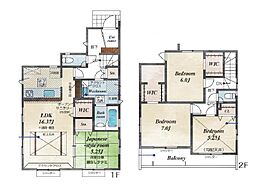 | 間取り | 4LDK 間取り内訳:リビングダイニングキッチン 16.7帖(1階)・洋室 7帖(2階)・洋室 6.7帖(2階)・洋室 5帖(2階)・洋室 4.5帖(2階) |