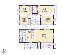 | 間取り | 4LDK 間取り内訳:リビングダイニングキッチン 17帖(1階)・洋室 6帖(2階)・洋室 4.9帖(2階)・洋室 7帖(2階)・洋室 4.5帖(2階)・洋室 4.5帖(2階) |