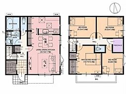 | 間取り | 4LDK 間取り内訳:リビングダイニングキッチン 20帖(1階)・和室 5.2畳(1階)・洋室 5帖(2階)・洋室 5.2帖(2階)・洋室 8帖(2階) |