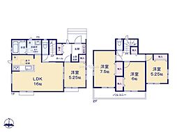 間取り内訳:リビングダイニングキッチン 15帖(1階)・洋室 5.2帖(1階)・洋室 9.5帖(2階)・洋室 6帖(2階)・洋室 5.6帖(2階)