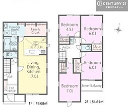 | 間取り | 4LDK 間取り内訳:リビングダイニングキッチン 17.2帖(1階)・洋室 7.2帖(2階)・洋室 5.5帖(2階)・洋室 4.8帖(2階)・洋室 4.5帖(2階) |