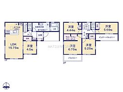 | 間取り | 5LDK 間取り内訳:リビングダイニングキッチン 15.7帖・洋室 3.7帖・洋室 6.2帖・洋室 5.4帖・洋室 5.4帖・洋室 4.5帖 |