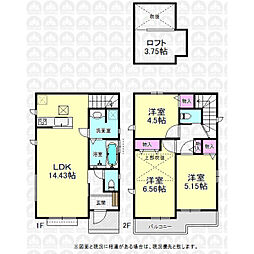 東南側接道につき陽当り良好。ロフト+全室収納付き。駐車1台可能な新邸です。