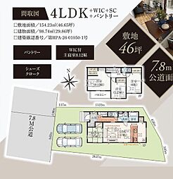 | 土地面積 | 160.2m2<私道負担面積7.18m2> | ||