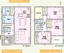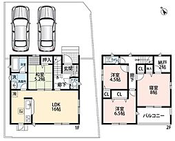 | 間取り | 4SLDK 間取り内訳:リビングダイニングキッチン 16.2帖(1階)・和室 4.5畳(1階)・洋室 5帖(2階)・洋室 5.7帖(2階)・洋室 7.2帖(2階) |