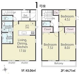 | 間取り | 4LDK 間取り内訳:リビングダイニングキッチン 16帖(1階)・洋室 5帖(1階)・洋室 7帖(2階)・洋室 6.5帖(2階)・洋室 5.2帖(2階) |