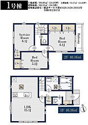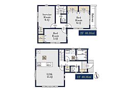 | 間取り | 2SLDK 間取り内訳:リビングダイニングキッチン 15.1帖(1階)・洋室 6.1帖(2階)・洋室 5.1帖(2階)・収納 6.1帖(2階) |
