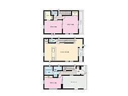 | 間取り | 3LDK 間取り内訳:洋室 5.1帖(1階)・リビングダイニングキッチン 16.7帖(2階)・洋室 7帖(3階)・洋室 6帖(3階) |